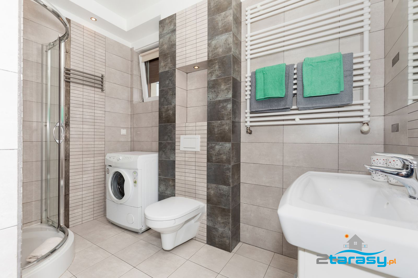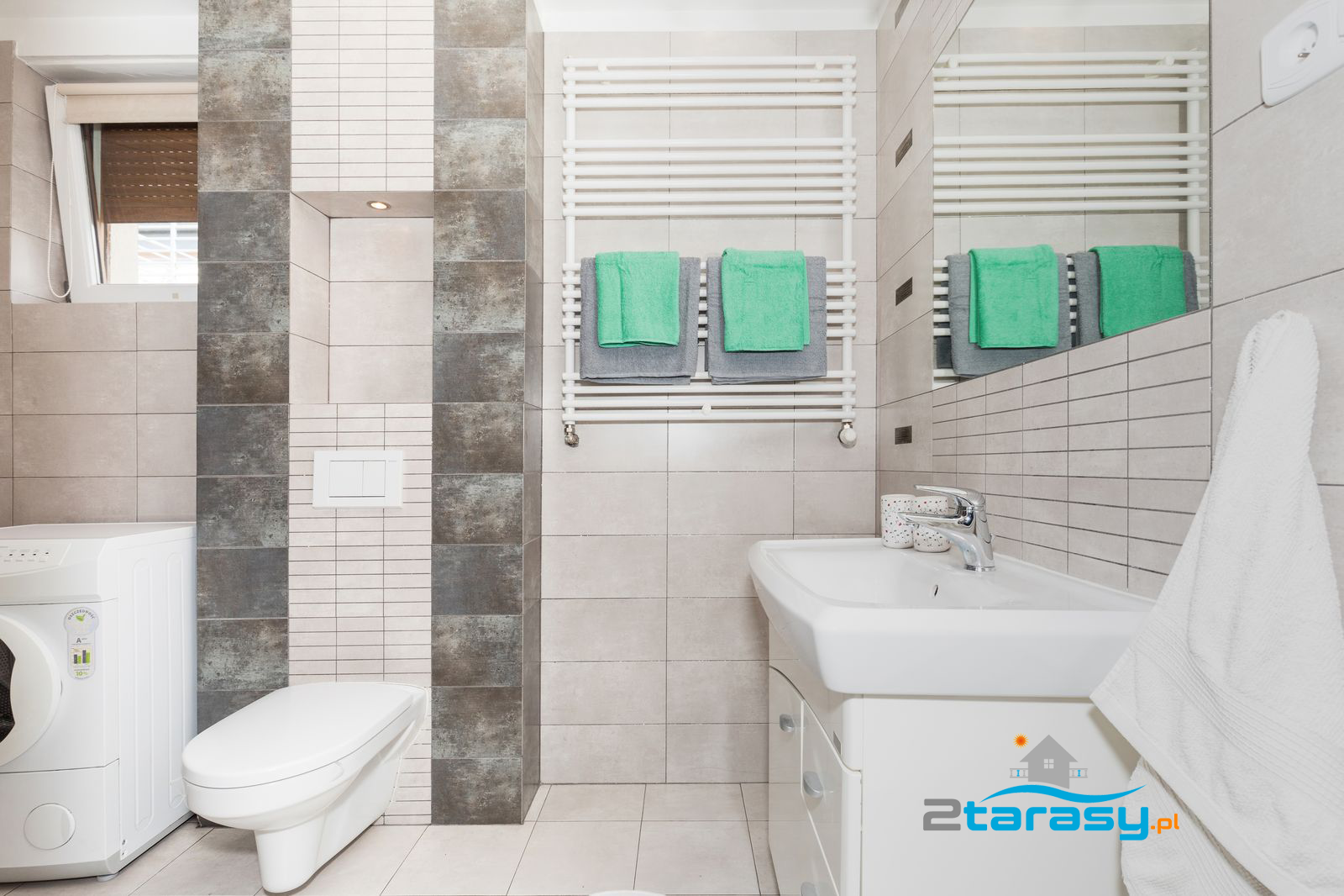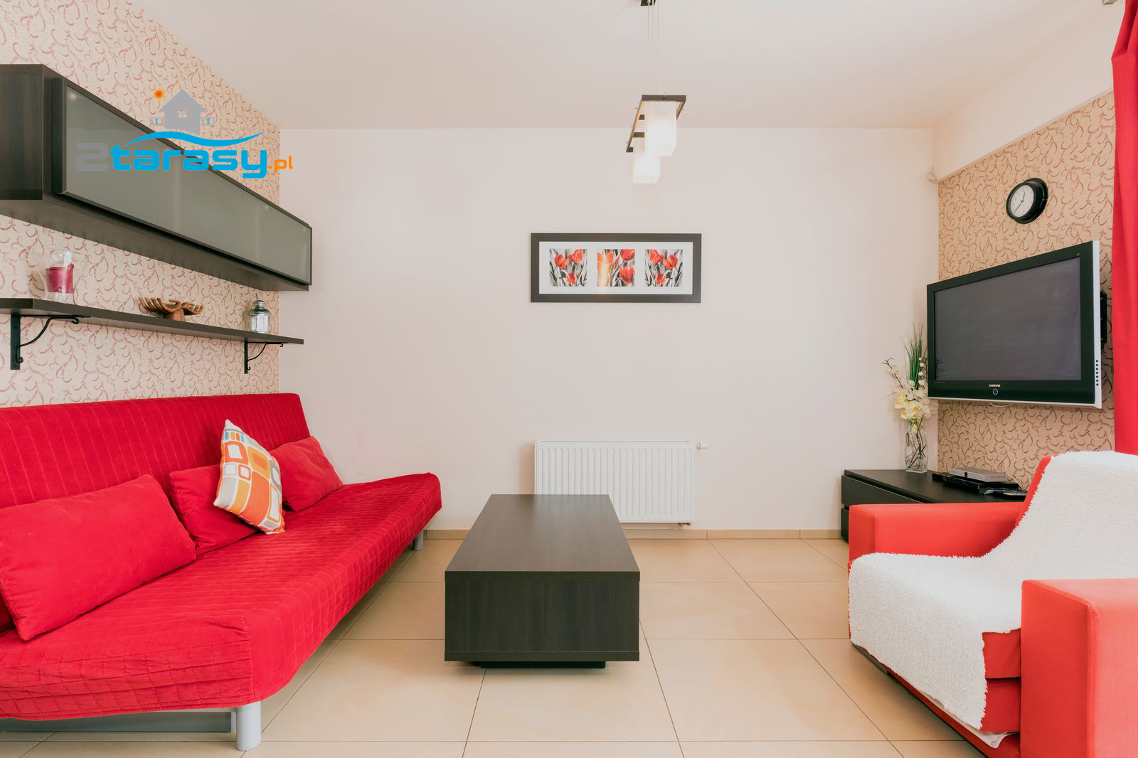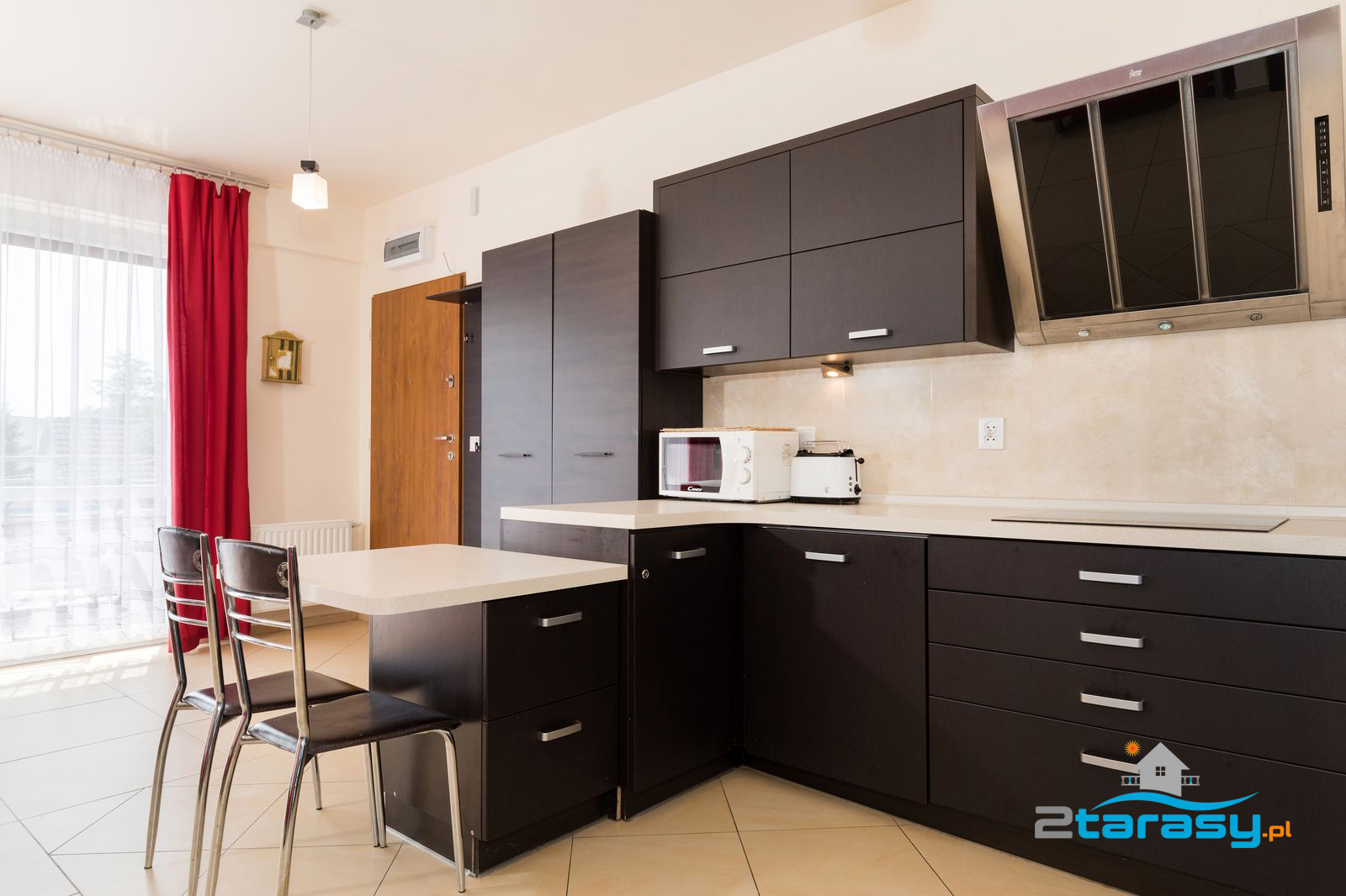 Do dyspozycji gości nowocześnie zaaranżowane wnętrza o pow. 50 m2: salon z balkonem, aneks kuchenny, sypialnia, łazienka z prysznicem no i 2 tarasy :)